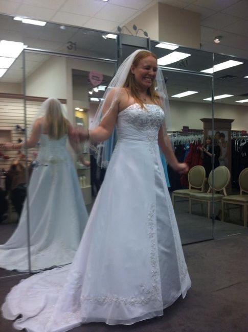 I said yes to the dress ladies!!!! Sorry its kinda bad picture, my ladies weren't really taking pictures today! This dress was a great deal! I ordered mine through the store for the extra length (too short in picture) and there was a stain on the one...