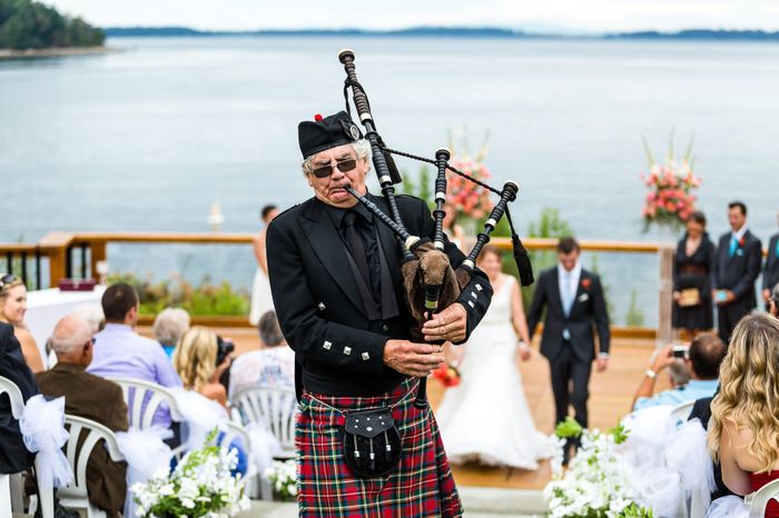 My FH and I are both of Scottish decent. We are working on booking a bagpiper for the ceremony. Yesterday he asked if I would rather have him wear a kilt or tux. I and completely undecided. I like the classic look of the tux, but I also like the...