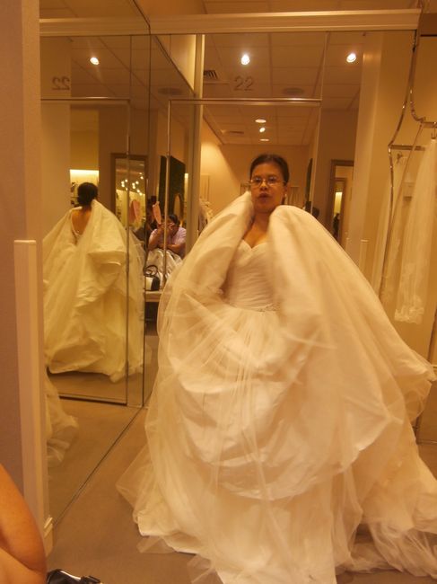 I finally said yes to the dress!!! yay. Below is me doing a happy dance with the dress and then the back. This dress didn't come easily. I had some dress fails. Below is one of those fails.lol