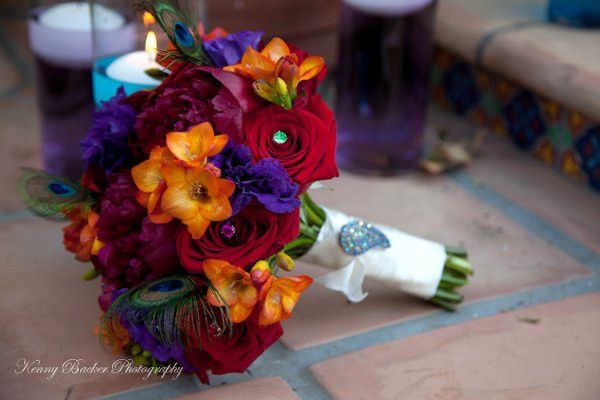 Here's the look I'm going for plus a few mini sunflowers. The florist told me many brides get ivory or very pale bouquets because bolder colors draw the guest's eye away from your face/dress and go right to the bouquet. But, I won't be carrying my...