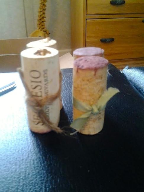 All my wine bottles are painted & stamped with love lyrics of songs that have a significance to us that will be playing during dinner So excited & just wanted to share! Place card corks are glued&tied, and my wine box is serving as a card box. I...
