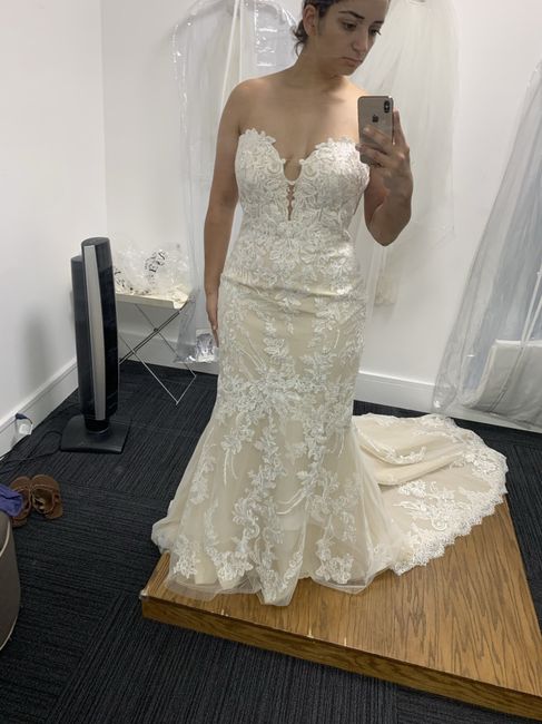 I am really regretting going for such a tight fitting and body-revealing dress, but the wedding is in a month so I am stuck with the dress. At this point I just want to minimize my bad parts showing - I am considering a bridal cape or sweater or even...