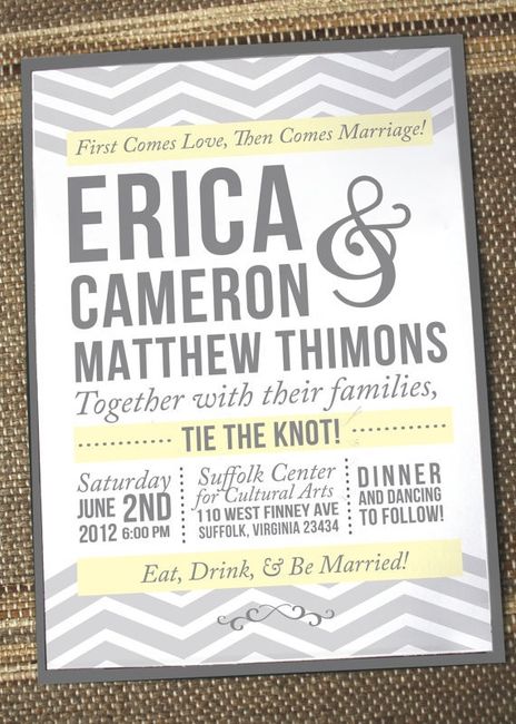 I need my WW family , I can't decide if it would look better ! White tablecloth , chevron runner and yellow napkins (pic 1) Or White Tablecloth , Gray Napkin and Chevron pouches. (I will put silver in them for each place setting) (pic 2) Continue...