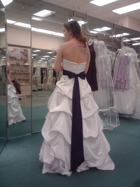 I went and tried on me dress with the slip, shoes and sash on Wednesday. I also got my daughters flower girl dress and my sisters Jr bridesmaid dress. Pic #1: Front of my dress Pic #2: Back of my dress Pic 3: Back of my daughters dress
