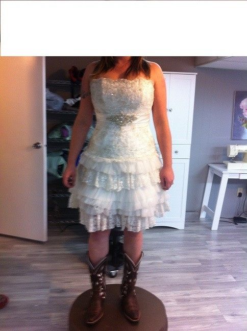 Hi all! Now that I was finally brave enough to share a picture of my dress on the internet in the dress porn thread, I've realized I could also use your advice about my dress. As you can see, the dress has a few tiers of lace that are different...