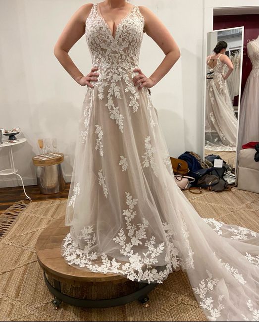 This is my wedding dress! 😍 I’m absolutely in love! Looking for ideas on wedding attire for the groom, groomsmen, and bridesmaids. My dress is mocha underneath so I don’t know how I feel about greys or if they will clash with my dress. Not leaning...