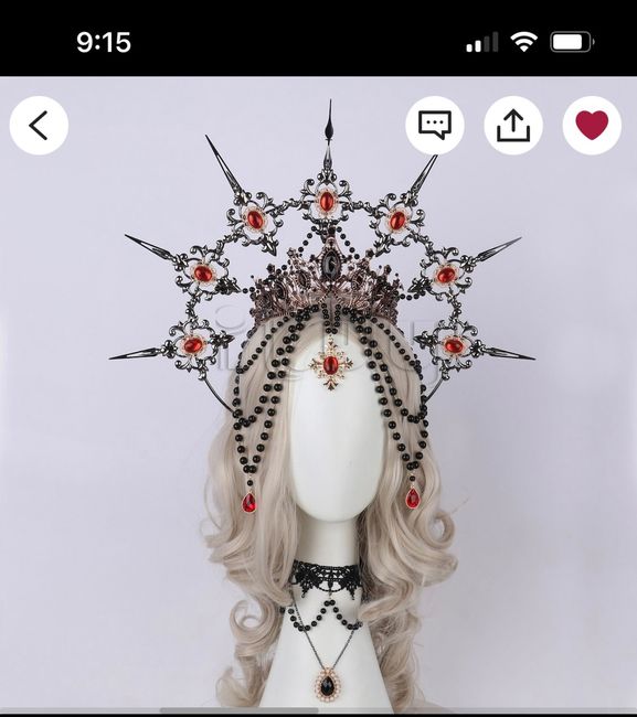 Hello! Both of these crowns are within my price range and I love both of them, my hair will be red it black and my dress will be black. I plan on wearing gold jewelry and would love some advice on what would look best.