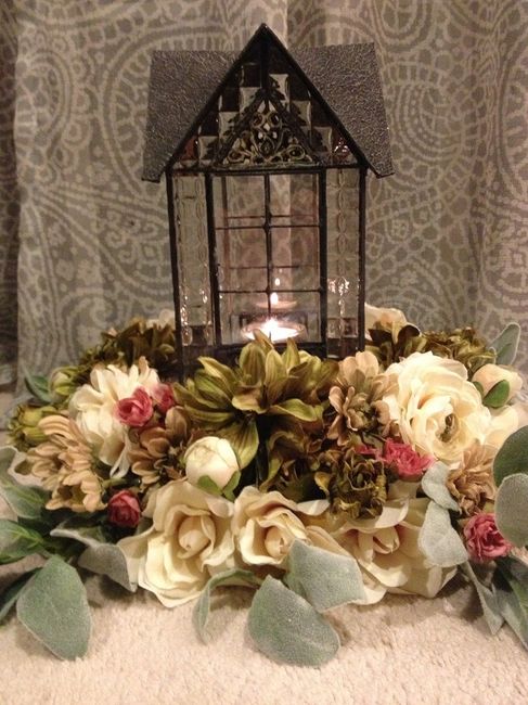 So I've been looking at lanterns at every place for weeks now. I found these today and fell in love with them! They are a little small so I am thinking about putting foam blocks under them and covering the base with flowers (I'm using fake ones)....