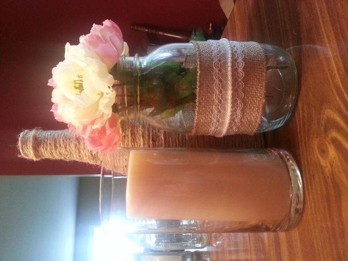 I've been working on finishing my centerpieces today...what does everyone think? I'll have these three pieces sitting on each table. I'm thinking of wrapping the vases is ivory lace also.