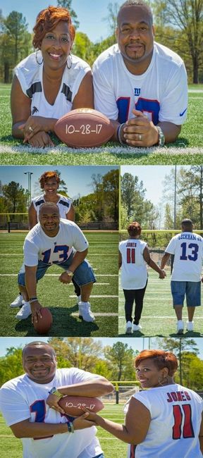 My first post here and I just wanted to share our STD (they were sent in May) . We are doing a football theme and one of our hashtags is #2teams1love. (Falcons and Giants) We decided to do something fun and casual.... so excited! And someone pointed...