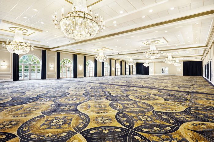 I do not like the carpet of the ballroom because it will not go with the decoration. I am thinking on working with the lights to make the ballroom look better. It does not look good with bright lights it will have to be more of a dark vibe like...