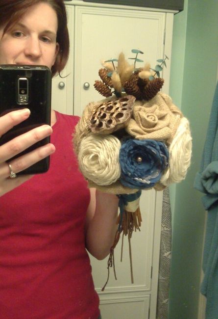 Really, it was all my idea, but if I don't end up using everything I've made for fire starter it'll be a miracle. I've been trying for weeks to arrange the flowers (which I've made them all from burlap/fabric) in some sort of pleasing arrangement....