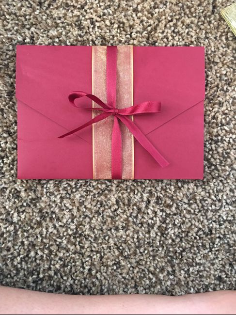Our DIY card box is made out of two crates that we stained and attached a latch and hinges. I added leaves and pine cones to our welcome sign and our seating chart. I made our table numbers and the belly bands for our pocket invitations. Feeling...