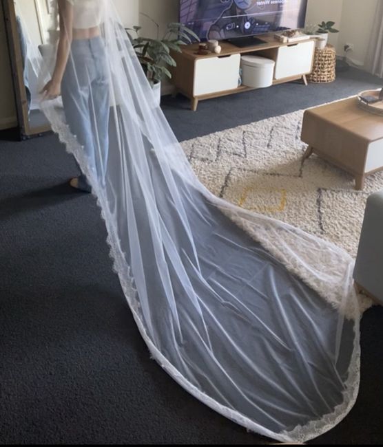 Hi all, My cathedral length veil, which has a lace trim the whole way round has arrived in the mail. When I put it on it seems to curl up around the edges of where it should sit on the ground and won’t stay sitting flush to the ground. Is this...