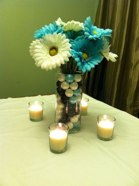 So I bought 50 mini Gumball machines for our favors Black & White and they go with our centerpieces which are vases filled with shimmery gumballs and flowers that match the girls boquets. I love them, I was going to make tags for them and place at...