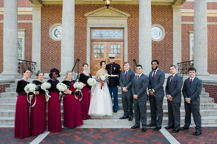Hello everyone! I am 103 days out from my wedding and I still haven't decided on my bridesmaid's bouquets. Mine will be a brooch bouquet, but I have no idea what to have my ladies carry. I can't afford to have them carry mini versions of mine. I...