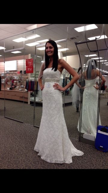 and my dress is TIGHT!! So I guess I'm eating salad for the next three months! Luckily alterations are only going to cost me about $50. I'm 5'9 so the length is perfect and it fits really well, they are cinching the top to make a sweetheart and...