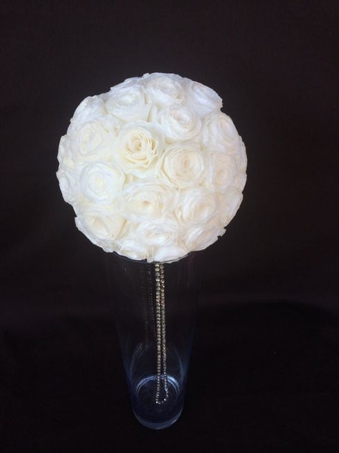 So, I have all my vases for the centerpieces, and we're going to add small candles around the vase just on the table for decoration. The vases will also have some glass beads inside. I got the flower ball sample today in the mail (via etsy), and...