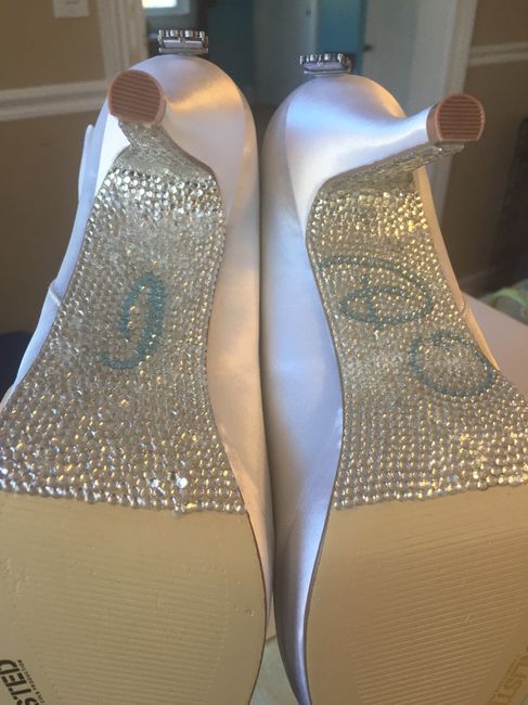 I wanted to make my shoes one of a kind. I bedazzled the bottom. They say "I Do" in Disney font. The lockets will have a picture of my dad so he can walk with me down the aisle. (He passed away in 2010.) Best part of these shoes...they were $5!! I...