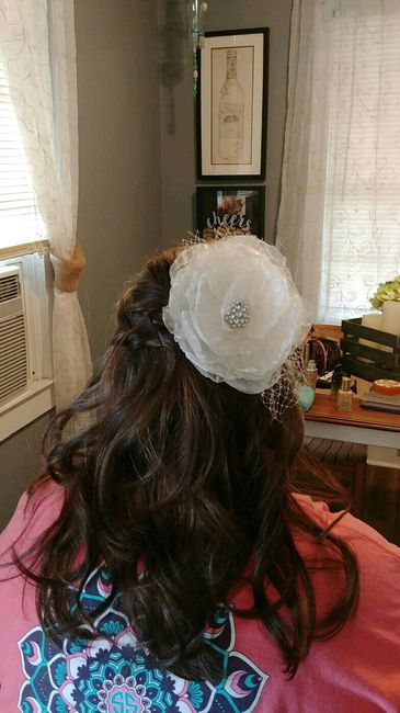 Ok, so here's my trial. I think I need to have tighter curls and were gonna have to do something to make em last longer cause they fell out quick. The flower is not mine she just stuck it in there cause she had it. I also think a lil darker lip.
