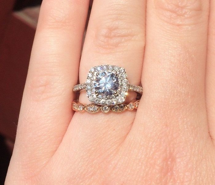 4369 days agoFor fun let’s see what everyone is wearing, yellow, white, rose, or mixed. I’ll start it off with mine yellow gold. Please share pics, can’t wait to see all of your pretty’s. I haven't bought mine but i'm sharing a pic of my sister's wedding ring....