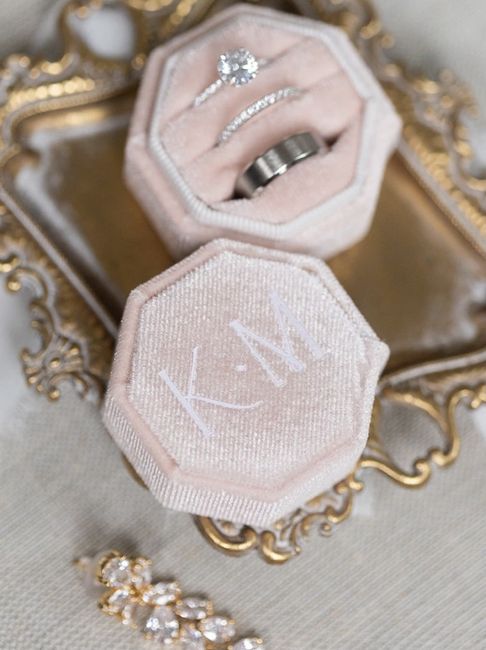 I’m wanted to do a flat lay ring box photo shoot for my wedding and I’m thinking about getting a custom ring box to put our 3 rings inside. I’m confused what initials should I use for our ring box. My first name is Holly and my fiancé’s last name is...