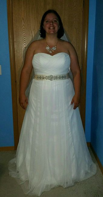 I haven't been on here in a few days, so forgive me if there is already a thread, but I scrolled through a few pages and didn't see one. I had some doubts about my wedding dress mainly because I have VERY broad shoulders but I walked into a David's...