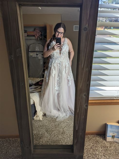 When you're wedding dress comes in weeks earlier than anticipated, and it's everything you wanted it to be and more. ☺️🤍✨