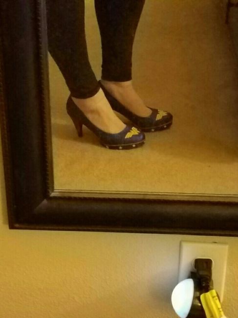 I know I posted about my dress today, but I also just got my wedding shoes in!!! They were my FH's idea since he'll be wearing a lot of batman. He wanted me to have a wonder woman Easter egg on me. They're also my something blue! Let's see yours!! ...