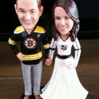 3654 days agoI just have to share our excitement over our bobble head cake topper! We aren't doing a traditional tiered cake since our venue is providing dessert. So we're doing a small fun cake (more like a groom's cake) that is hockey themed. We splurged on a...