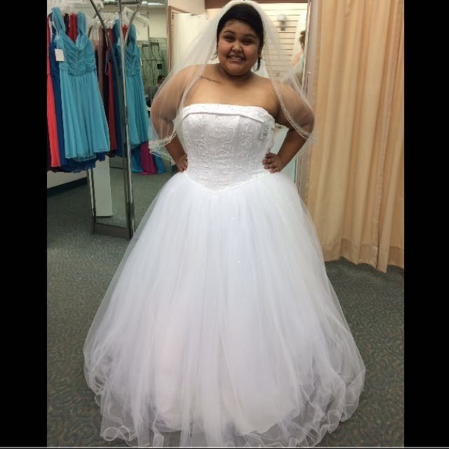So I was just looking back on pictures of the dress I bought and how I never thought I would choose a ball gown. You always read that "bigger girls" shouldn't wear ball gown wedding dresses because it will only make them look bigger..LIES! So I am...