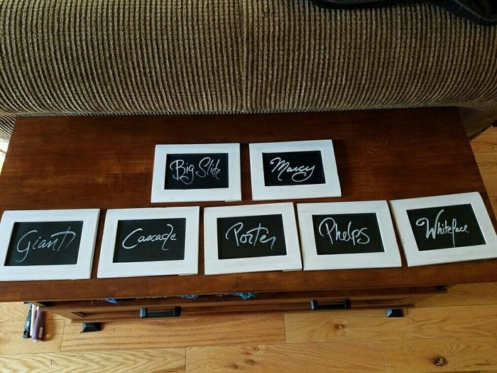 So, my FH and I are getting married in the Adirondacks, so I decided to do table names rather than table numbers. The tables names are some of the high peaks that surrounded the town we grew up in. What do you think?