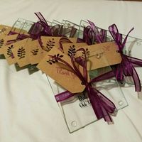 3524 days agoFH and I worked for a few hours today and almost finished putting together our favors. We have glass coasters that say "love, laughter, and happily ever after, Rob and Jess, Oct 1st 2016. They're taking forever but I love them!