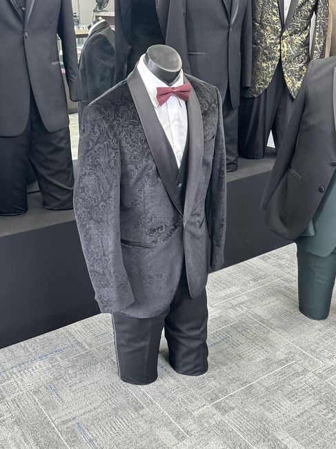 I have my bridesmaids in black velvet. My fiancee went suit shopping yesterday and fell in love with a burnout black velvet paisley suit jacket. Is he going to look too matchy matchy with the bridesmaids? Or am I overthinking it since everyone is...