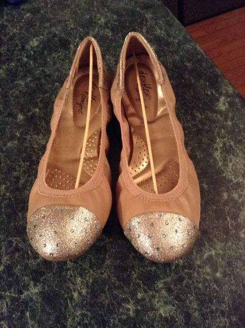 I am wearing a ball gown so you won't even be able to see my shoes but I wanted to do something cute. I have to wear flats due to our ceremony location so I went to Payless and picked up my favorite brand in nude. I modpodge glittered the toes and...