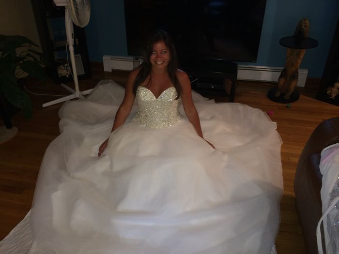 Its the Pnina Tornai 4019, a pretty blingtastic ballgown but its so me ha ha. I keep seeing it on SYTTD and whilst they are 'normal' people, I wanted to see some real pictures of it, or if anyones tried it on and its not as good as it looks?