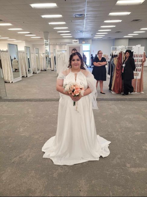 So this is the dress I picked it need to be altered still , but ignore the veil as sleeves I hate my arms and I’m trying to figure out what to do about sleeve without making the dress look awkward do to it being halter top please help!!