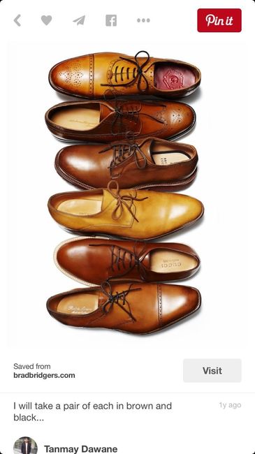 3900 days agoI went to men's wearhouse to price out outfits for our groomsmen. We are not doing tuxes- just navy pants, white shirts, and mix and match bow ties, vests and suspenders. I love the look of cognac colored shoes to go with this outfit but apparently...