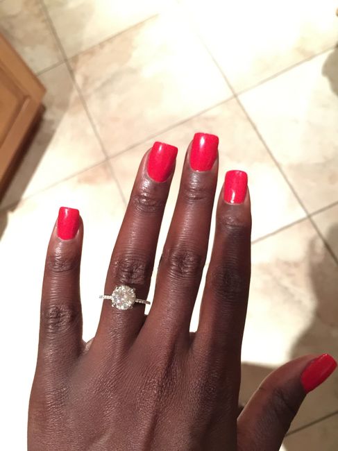 Here is mine! Traditional and classic, kind of like my guy The stone is so clear it's absolutely stunning in the right light (I've found that Starbucks is one of the best places to stare at my e-ring lol). The other ring is the wedding band I'd...