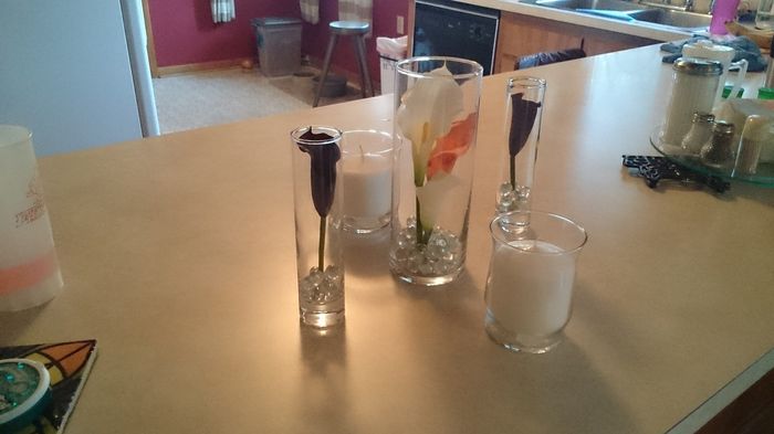 4227 days agoI would like honest opinions of my centerpieces. Any constructive criticism is welcome. They will be on white table cloths. they will be filled with water and there will be a floating candle on the large vase.