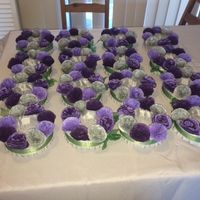 3924 days agoI did it! I covered 16 Styrofoam rings in ribbon, cut out over 4500 tissue paper circles (in stacks of 24 of course), wired them together, fluffed them into over 150 flowers, wrapped the stems in floral tape and then made them into centerpieces! I am...