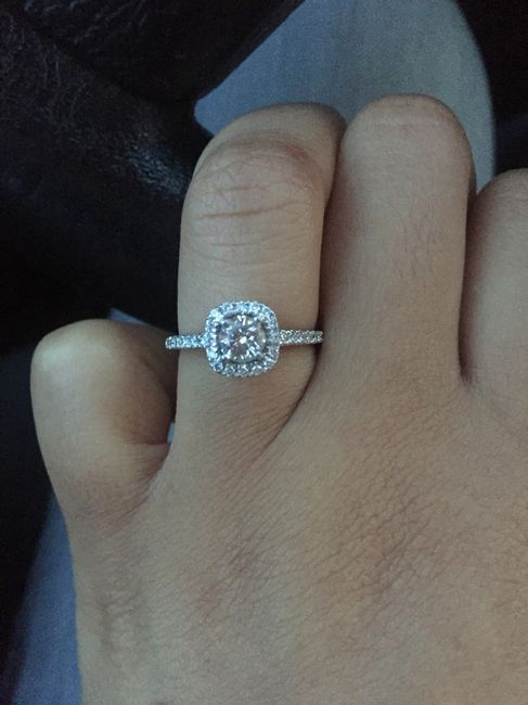 Here is mine! Traditional and classic, kind of like my guy The stone is so clear it's absolutely stunning in the right light (I've found that Starbucks is one of the best places to stare at my e-ring lol). The other ring is the wedding band I'd...