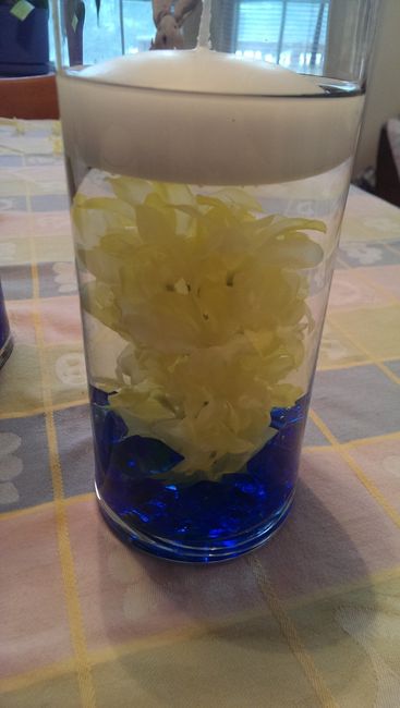 I think this is the finished product! I know that the round mirrors usually go under these types of centerpieces, but I think it would look fine without one too. Let me know what you think and your opinions on possibly putting on the mirror...