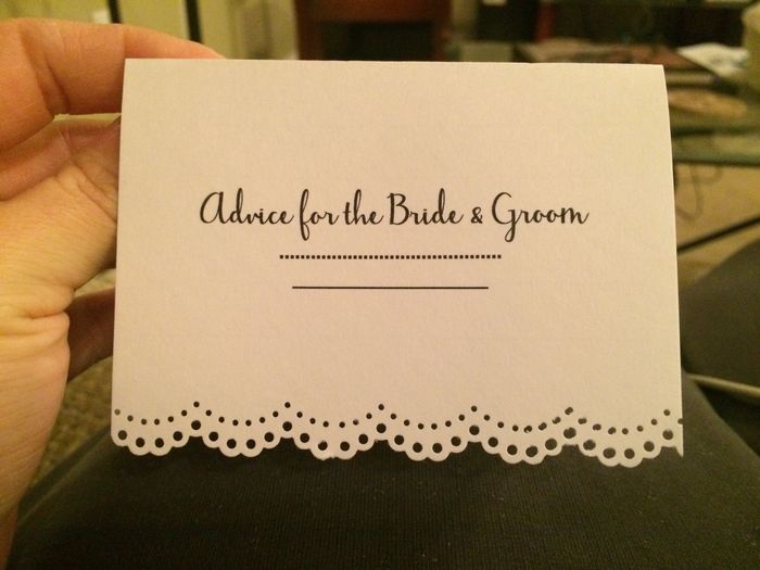 I feel like we have been stagnant in planning the last week or two. We have had unexpected costs come up, some of which we still don't know the damage on. So, I decided to work on some of my DIY projects. The first is a picture of my advice cards...