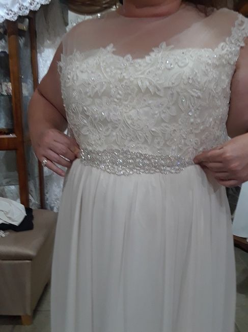 Drop your wedding dress photos below. I am having a hard time not showing my future husband. P.S. I hate my picture taken and am super self conscious. This is the off the each try on. 3 sizes too big.