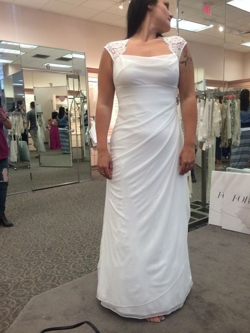 Davids bridal and I love it. My undergarments weren't too flattering, but once I get ones that fit it should look mu h nicer thru the middle 'scuse my face lol