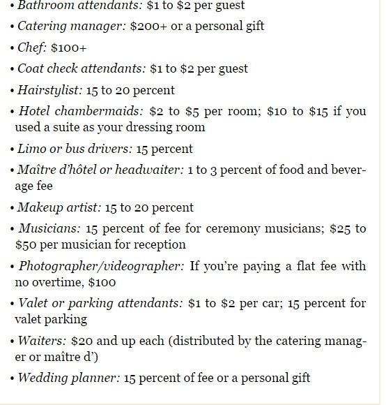 I wasn't going to tip any vendors except my makeup artist- I was just going to write them awesome reviews after the wedding. Who are you guys tipping??
