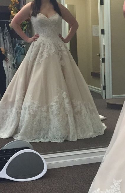 i am so excited! I found my dress! I was so nervous to go dress shopping, but I had a great experience and found my dream dress! Here are some pics! I'm not sure yet about details like what kind of belt/if I want a belt...I know I want a cathedral...