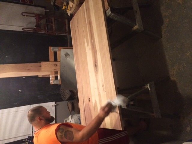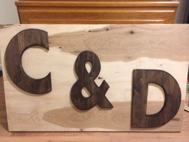 My FH is a genius! This turned out awesome! We joined 2 pieces of hickory together, sanded it, and attached the letters. Once we get it home after the wedding, we will spar urethane it and it will make the hickory pop. We are having guests sign with...