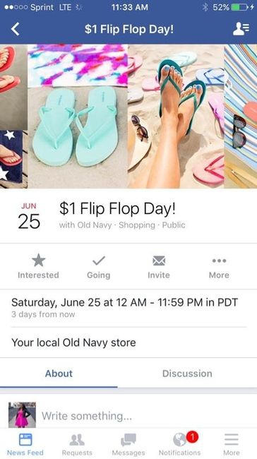 For anyone who needs flip flops for their BP or who wants to offer them to their guests, Old Navy has their $1 flip flop sale this Saturday, June 25th.